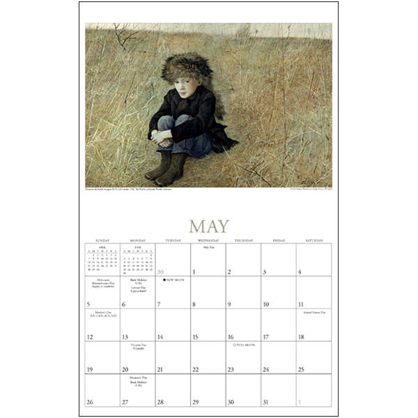 Andrew Wyeth remains one of the most celebrated artists of the 20th century. His paintings like Christina’s World, and the Helga Pictures series are among his most famous, and his work is held in most major American museums including MoMA, the Metropolitan Museum of Art, and more. We are honored and privileged to offer the only commercially available calendar featuring the work of Andrew Wyeth — a true American artist and popular culture icon.
