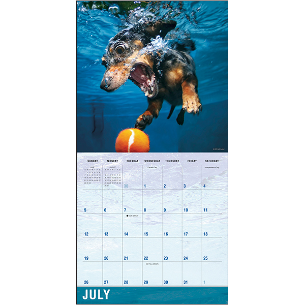 Images from Seth Casteel’s award-winning book, Underwater Dogs, is the source for this 2025 calendar. Featuring underwater portraits of our canine friends, the personality of each pup is heartwarmingly visible. Seeing dogs from below the water’s surface through bubbles, with bared teeth, and a dogged determination to get that prized ball, we see the joyful and energetic presence dogs bring into our lives.